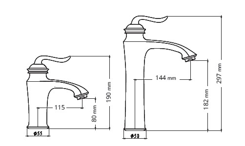 ברז אמבט נמוך/גבוה ידית בסגנון עתיק