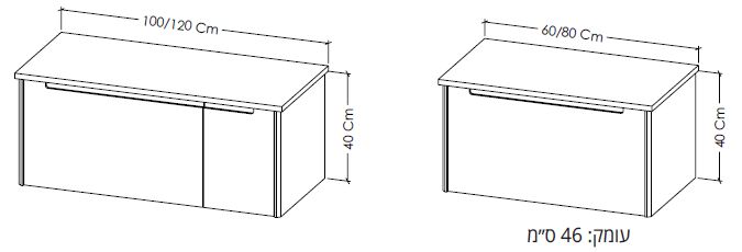 | מידות רוחב (ס"מ) | עד 60 | עד 80 | עד 100 | עד 120 | עד 150 | ארון שירות תלוי |