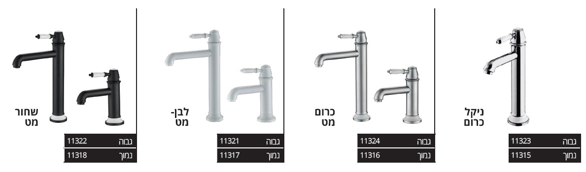 ברז אמבט נמוך/גבוה ידית בשילוב פורצלן