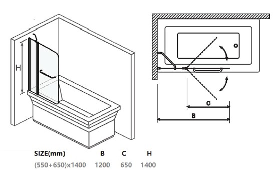 • דלת 65 ס״מ על ציר פתיחה פנימה והחוצה בשילוב עם דופן קבועה 55 ס"מ