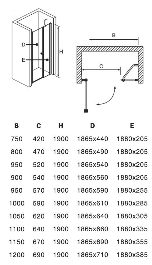מקלחון חזית קבוע ודלת זכוכית שקופה/פסים