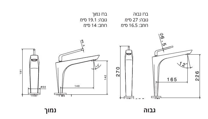 ברז אמבט נמוך/גבוה פיה מסתובבת