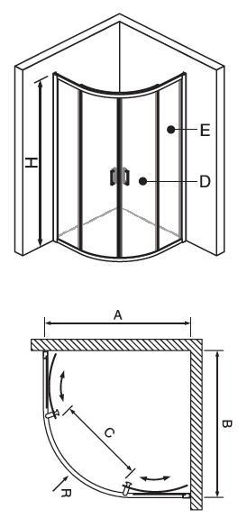 - שתי דפנות קבועות ושתי דלתות הזזה מעוגלות הנעות בתוך מסילה