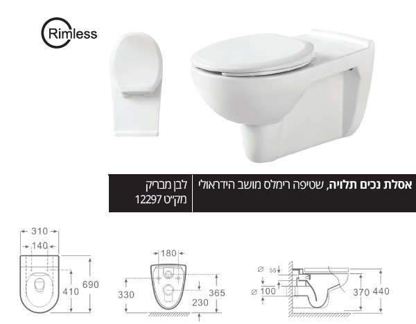 אסלת נכים תלויה, שטיפה רימלס מושב הידראולי לבן