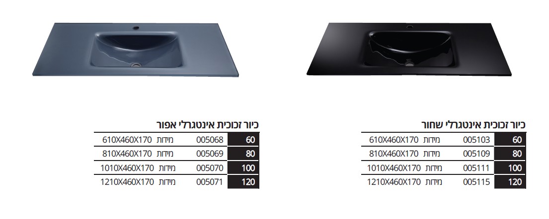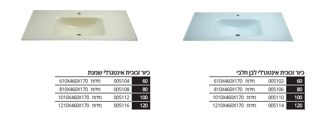 כיורים זכוכית אינטגרלים Integral glass