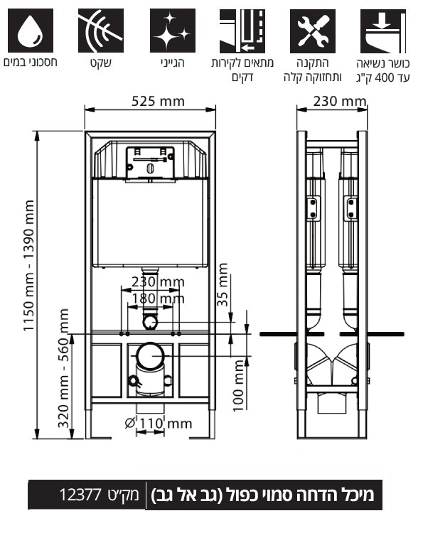 - כמות- 3/6 ליטר מיכל הדחה סמוי דו כמותי