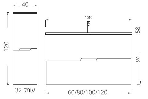 | מידות רוחב (ס"מ) | 60 | 80 | 100 | 120 | ארון שירות תלוי |