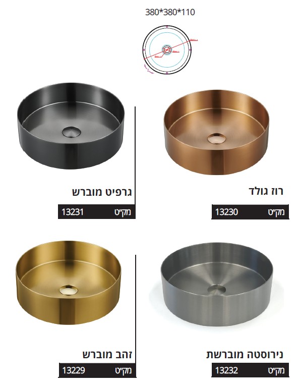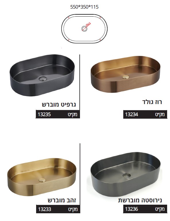 כיורי נירוסטה לאמבט עגול / אליפסה בגימורים