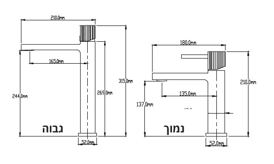 ברז אמבט נמוך/גבוה ידית מחורצת